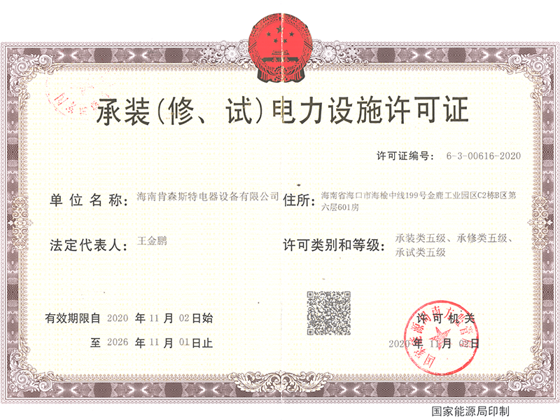 ³Ð×°£¨ÐÞ¡¢ÊÔ£©µçÁ¦Éèʩʩ¹¤ÔÊÐíÖ¤ Îå¼¶